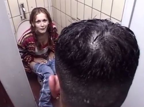 Девка попросилась в мужской туалет и за вход расплатилась натурой