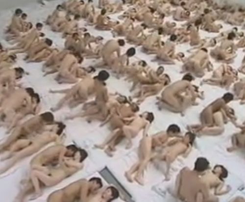 Во имя мирового рекорда толпа из 500 человек собралась на мега оргию японцев в шокирующем масштабе. Огромный ангар заполнили сотни японских пар, готовых принять добровольное участие в этом крупномасштабном азиатском xxx проекте. Даже тот факт, что гениталии ебливых азиатов вырезаны цензурой, подобная вакханалия смотрится с большим интересом, ведь придумать устроить такой грандиозный массовый секс могли только в Японии. Хорошо организованная групповуха узкоглазых девушек с парнями, которые сношаются как кролики, выглядит немного странно, зато весело и не скучно. Наверно так они выполняют программу по повышению рождаемости, размножаясь в своём инкубаторе после инцидента на Фукусиме или атомной бомбардировки Хиросимы и Нагасаки.