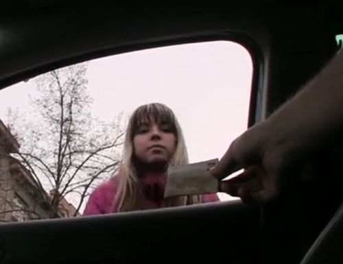 Внимательный иностранец, проезжая мимо случайной девчонки на улице, быстро узнал в ней молодую топовую российскую порноактрису, которую захотел подцепить и трахнуть. Притворившись не местным хитрец остановил автомобиль рядом с 20 летней русской девушкой, чтобы спросить у неё дорогу, после чего предложил её подбросить, но не просто так, а за деньги уговорив на минет. Продажная тварь не отказалась от лёгких денег и когда они отъехали в безлюдное место под мостом - отсосала щедрому автолюбителю на переднем сиденье и легко согласилась на платный секс с ним в машине.