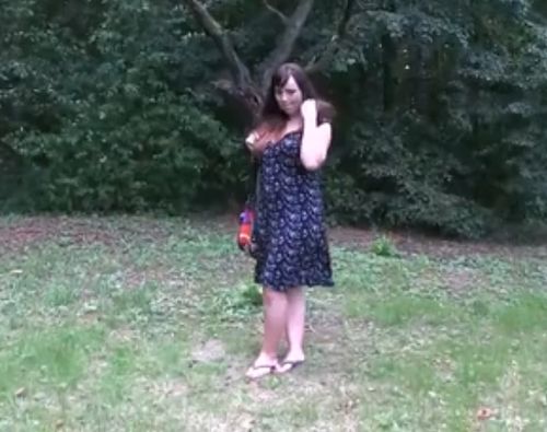 Упитанная девушка с красивой сочной грудью в парке дала пикаперу