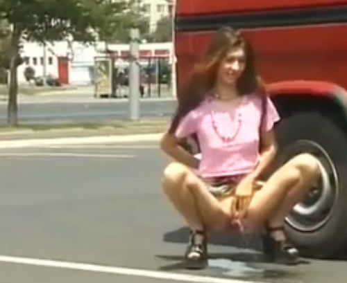 Нагло писающие на улице молодые девушки - уличная писсинг подборка