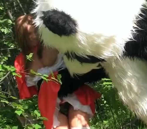 Большая русская панда поймала и выебала в лесу красную шапочку