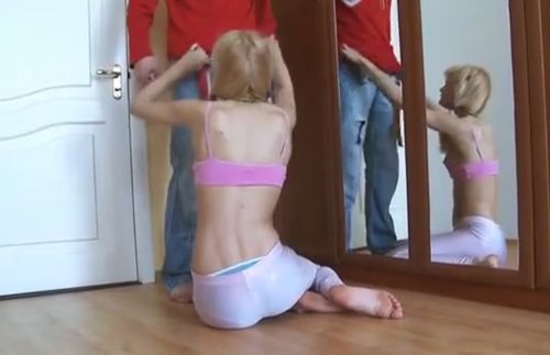 Любопытный старший братишка заглянул в комнату сводной 18-летней сестры-проказницы и застал её в розовых лосинах и домашнем платье перед зеркалом. Игривая молодая девчонка с трудом пыталась надеть бусы, а когда братец попытался помочь, весёлая озорница начала заигрывать с парнем, позволяя ему через одежду трогать себя за интимные места. Прижимая молоденькую блондинку к себе поближе чувак раздел шлюшку до нижнего белья, после чего милашка стала дразнить брата минетом. Довольствуясь ласками члена, поскольку сестрёнка ему не даёт, братик любовался отсасывающей ему голой девкой, когда она разделась, да вскоре кончил и дал слизать сперму.