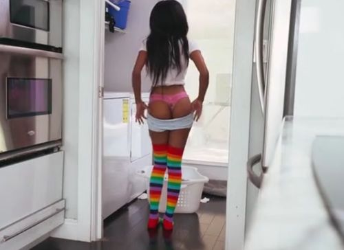 Соседский мужик с видеокамерой без приглашения зашёл в дом фигуристой миниатюрной соседки-негритянки Бритни Уайт и увидел, как шоколадка раздевается возле стиральной машины, снимая с себя шорты. Сосед сразу запал на черную попку голожопой негритоски, сиськи 4 размера которой тоже являлись чудесным творением природы. После такого соблазнительного зрелища наглец захотел трахнуть чернокожую красотку, схватил экзотическую девку за аппетитную попочку, а когда понял, что соседка не против, снял с неё лифчик, да хардкорно выебал белым большим членом в процессе стирки.