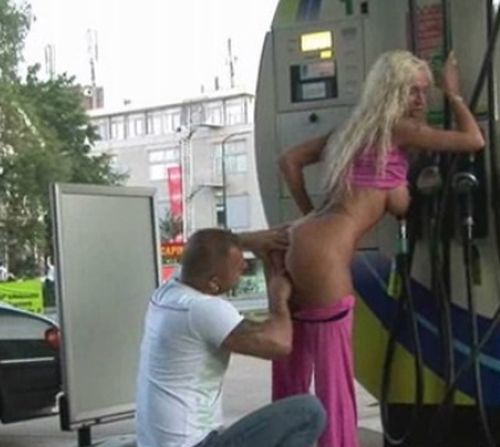 Уличный секс на АЗС с королевой бензоколонки довелось попробовать счастливому автомобилисту, который не смог отказать стройной сексуальной милфе с упругой силиконовой грудью большого размера. Прямо на заправке рядом с оживлённой трассой мужик раздел зрелую секси женщину с сексуальным тату на берде и публично трахнул на улице, пока никто не обратил на них внимание. Горячая сисястая телка средь бела дня давала лизать киску и иметь себя, при этом постоянно оглядывалась по сторонам, ведь прятаться от всех и заниматься сексом в публичном месте не так-то просто.