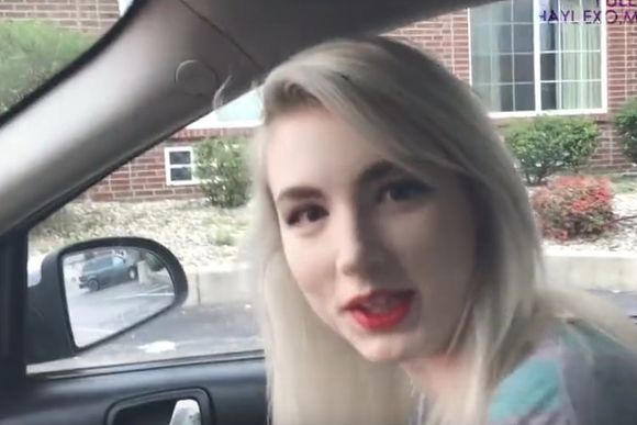 Приятель договорился подвезти молодую знакомую блондинку на работу, но когда она села к нему в машину захотел с ней быстренько перепихнуться. По дороге между ним и его белобрысой подругой завязался разговор, во время которого он уболтал симпатичную светловолосую приятельницу на коротенький перепих в автомобиле, где дал ей в рот член и по быстрому присунул в киску перед тем, как довести её. То, как она сосала ему на переднем сиденье и садила на хуй, он снял от первого лица с максимально близкого ракурса.