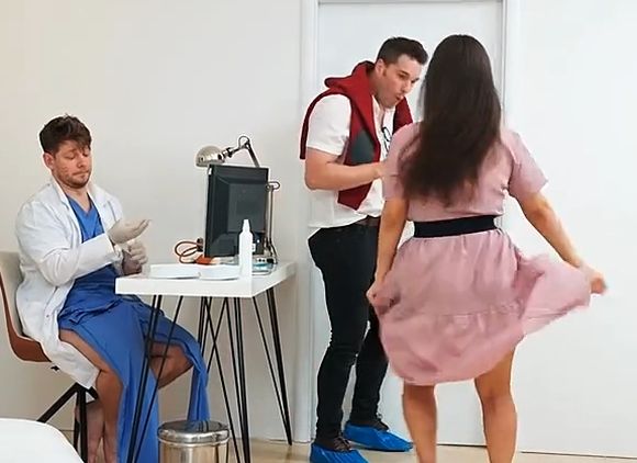 На первом месяце беременности девушка пришла к врачу на приём вместе с мужем, чтобы дать ему возможность увидеть снимок своего плода в реальном времени. В медицинском кабинете мужчина чувствовал полное доверие к врачу-узисту, который с первых минут положил глаз на его красивую женщину. Пока обманутый женатик пялился в монитор узи-аппарата, за его спиной произошла наглая измена жены с врачом, которую он проебал от начала до конца. Более того, посреди полового акта доктор попросил его покинуть кабинет, якобы для того, чтоб он не мешал обследованию.