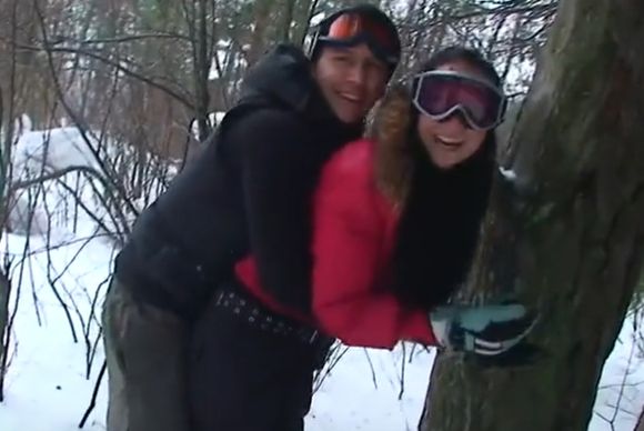 Домашнее видео, снятое ясным днём на улице молодыми людьми, которые на снегоходах приехали отдохнуть в снежные горы и записали реальное порно в зимних куртках на лыжном курорте. Короткий эпизод своего личного траха ребята покажут вам от начала и до конца. Несмотря на то, что на улице пиздец как холодно, парень с девушкой насладились прелестями интимной близости на морозе, где чувак ещё и кончил в рот одетой подружке в лыжной маске. Судя по голосу за кадром, съёмка происходила в присутствии близкой подруги, которая не пропустила ни одного важного момента.