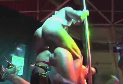 Развратное стрип выступление у шеста на сцене публичного порно шоу