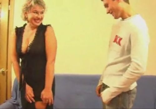 Для встречи со взрослым и самостоятельным сыном студентом зрелая русская мама приехала в красивой одежде и уединилась с ним в его комнате студенческой общаги. Сильно соскучившийся по любимой мамочке сынок стал разглядывать её, а она - показывать ему вечернее длинное платье с сексуальным разрезом от бедра, коим соблазнила сыночка на секс. Парень не растерялся перед похотливой зрелкой, позволил её спустить с себя штаны, а потом дал мамаше в чулках сделать минет и трахнул родительницу сзади, не снимая белья. Счастливая женщина с большой грудью и сочной 50-летнеё жопой осталась довольна тёплым гостеприимством паренька, сперму которого она не побрезговала проглотить.